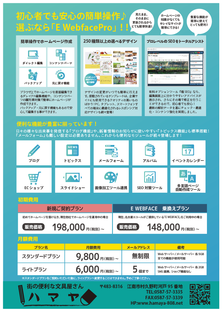 初心者でも安心の簡単操作で随時更新も出来ますよ。